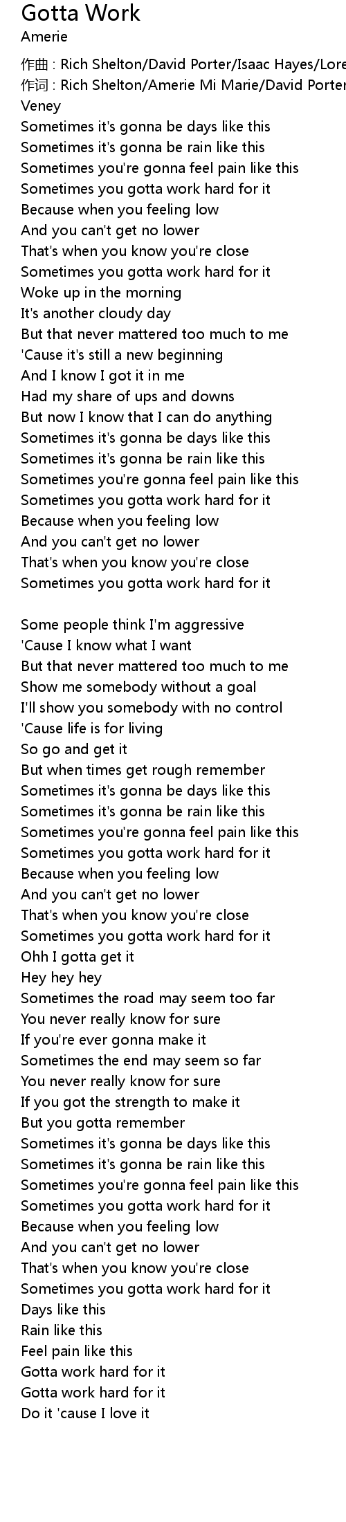 | 作词 : Rich Shelton/Amerie Mi Marie/David Porter/Isaac Hayes/Loren Hill/Kevin Veney | |