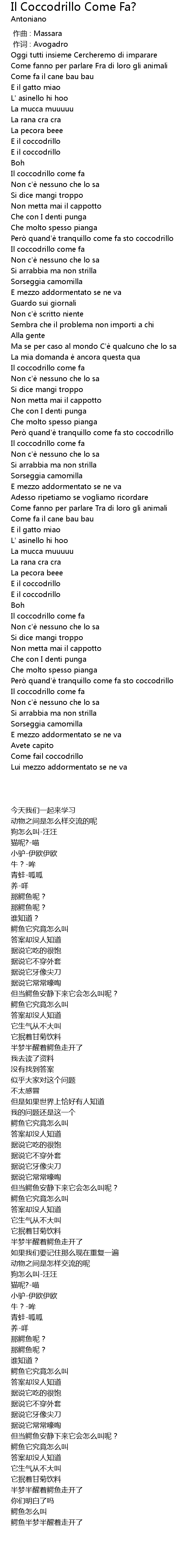 | [00:31.93] | Il coccodrillo come fa |