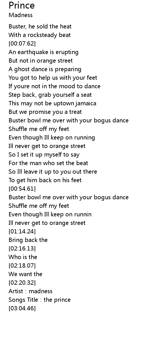 | [00:35.50] | Buster bowl me over with your bogus dance |