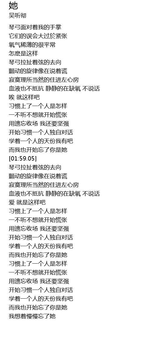 | [01:53.63] | 而我也开始忘了你是她 |