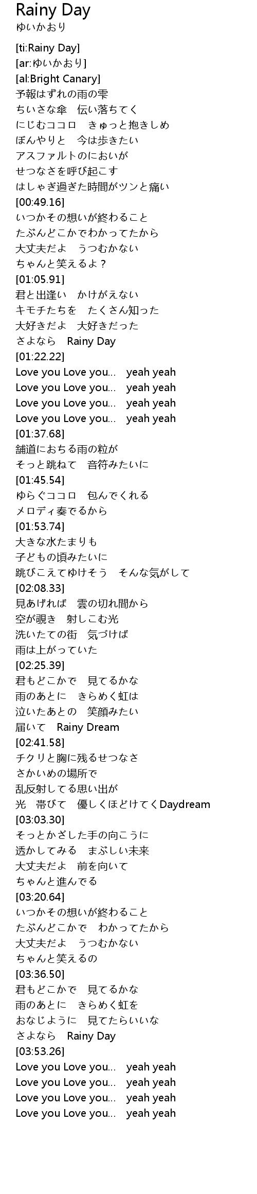 | [00:22.45] | ちいさな傘 伝い落ちてく |