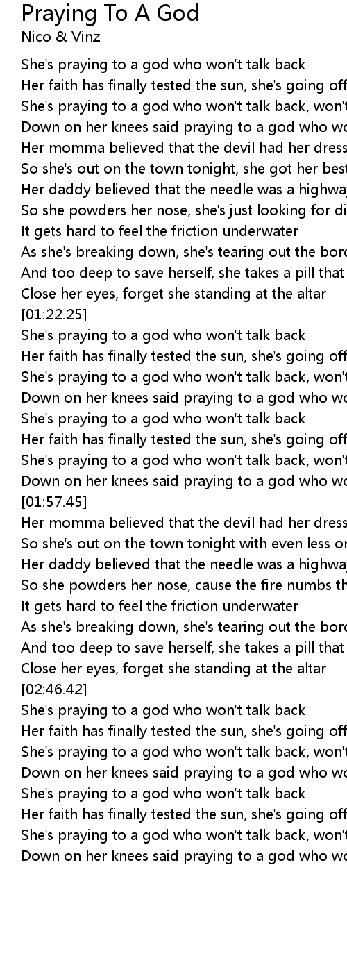 She's praying to a god who won't talk back, won't talk back |