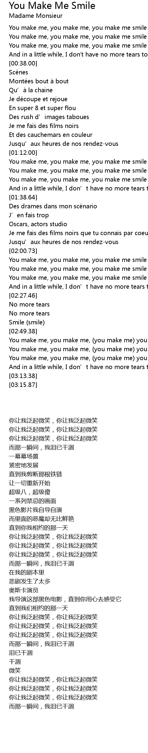 | [03:01.38] | You make me, you make me, you make me you make me smile Smile |