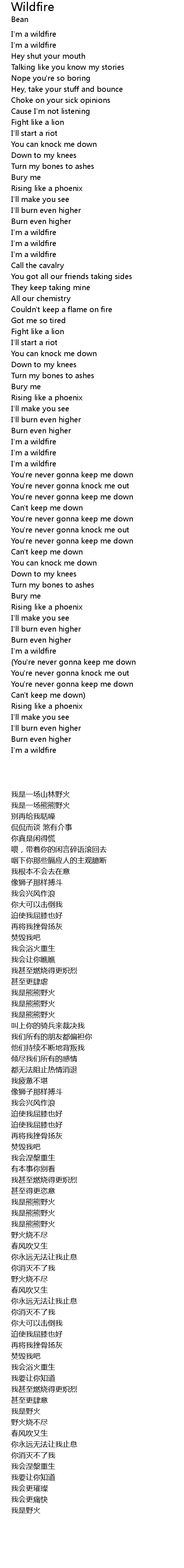 | [00:49.44] | I'm a wildfire |