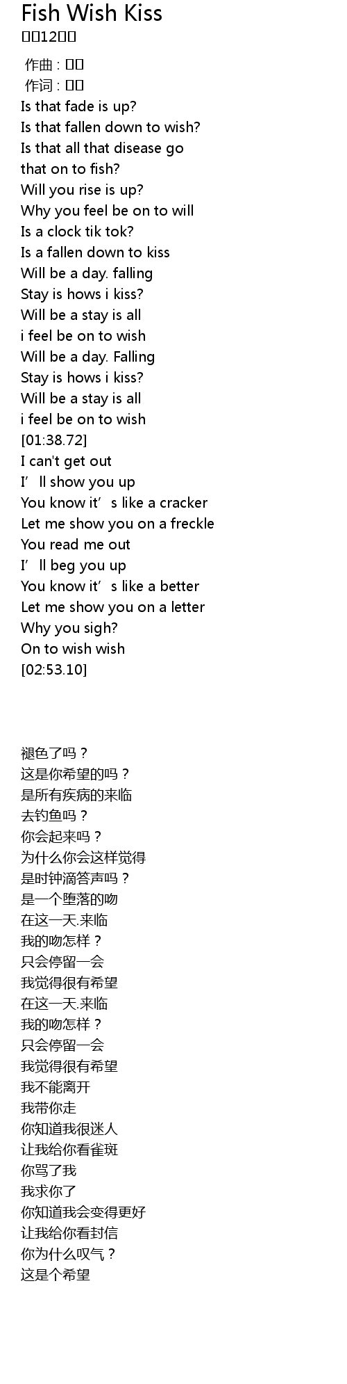 | [00:24.81] | Is that fallen down to wish? |