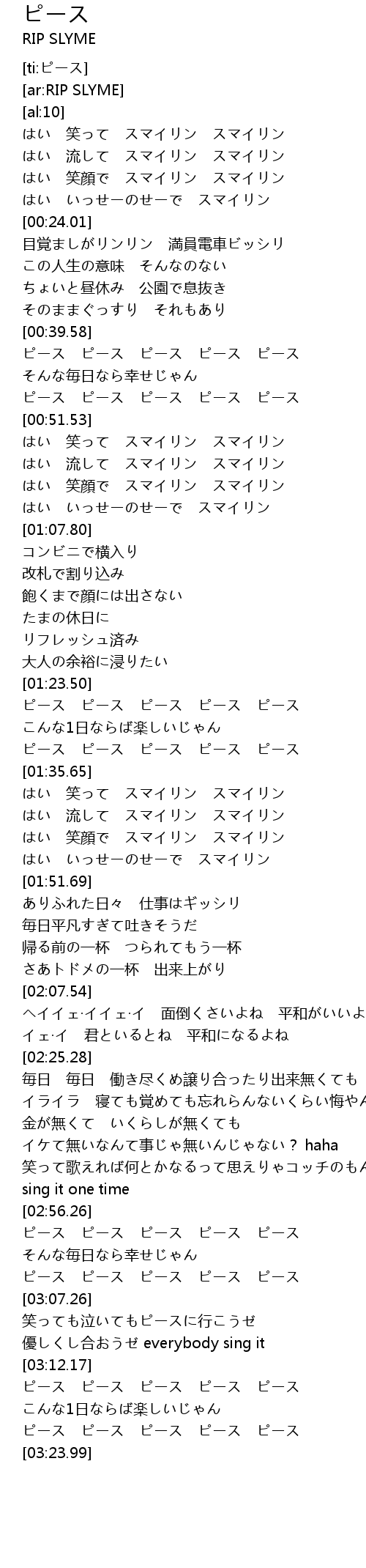 | [03:20.21] | ピース ピース ピース ピース ピース |
