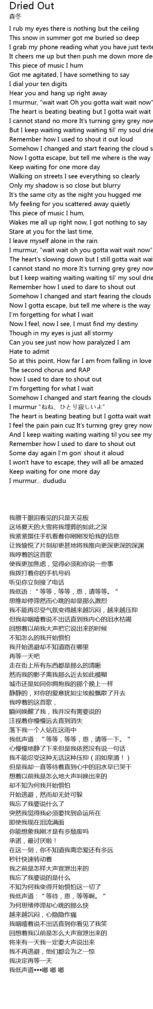 | [00:43.490] | I murmur, "wait wait Oh you gotta wait wait now" |