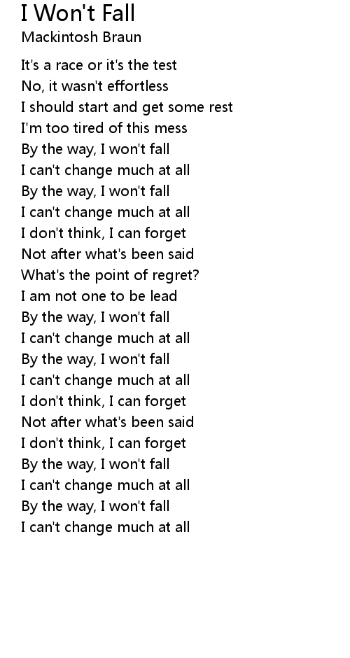 By the way, I won't fall |