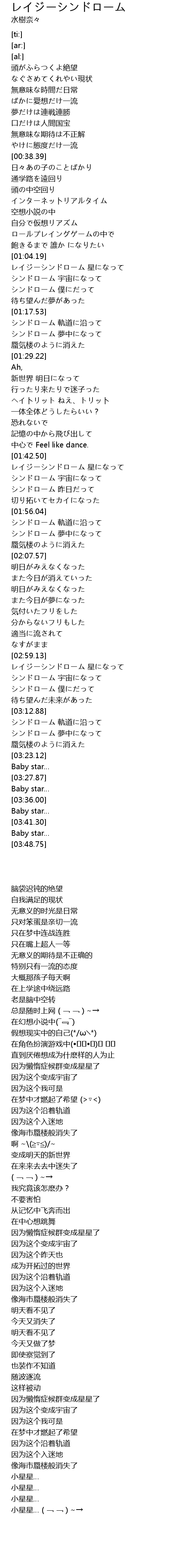 | [02:59.60] | レイジーシンドローム 星になって |