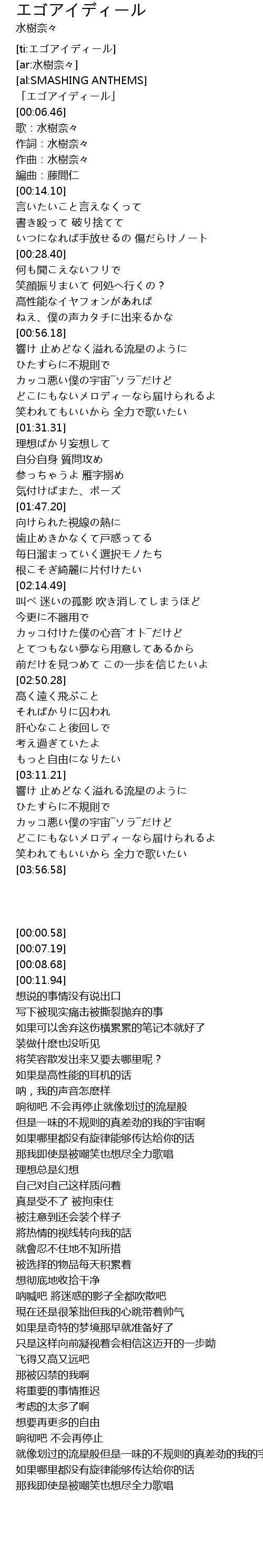 | [00:56.76] | 響け 止めどなく溢れる流星のように |