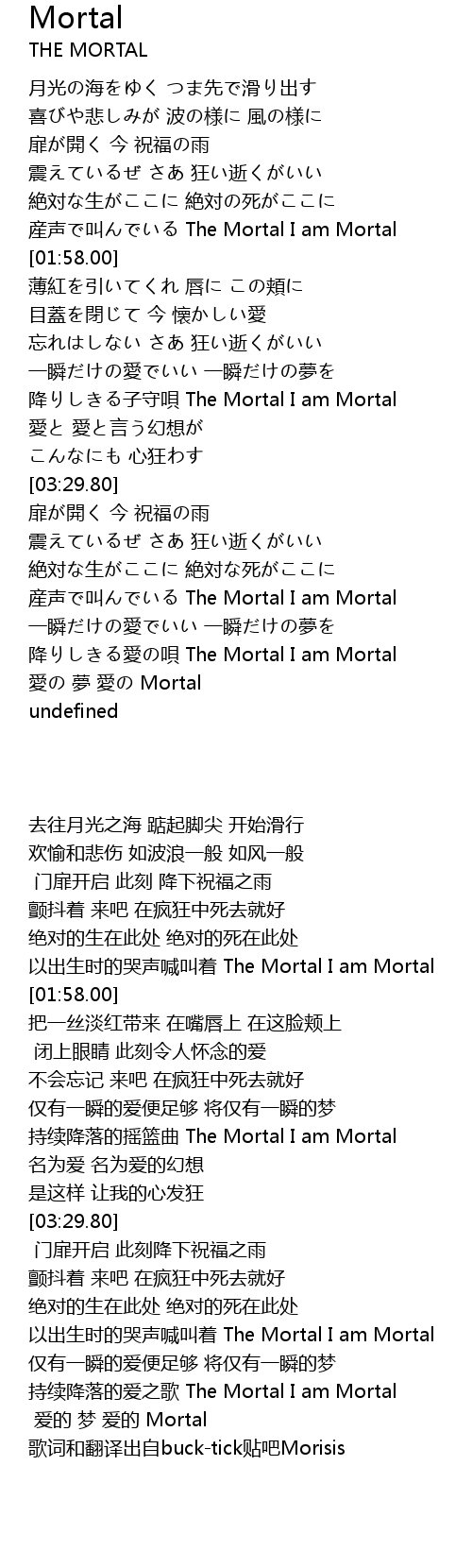 | [03:04.14] | jiàng zi shǒu bei The Mortal I am Mortal |