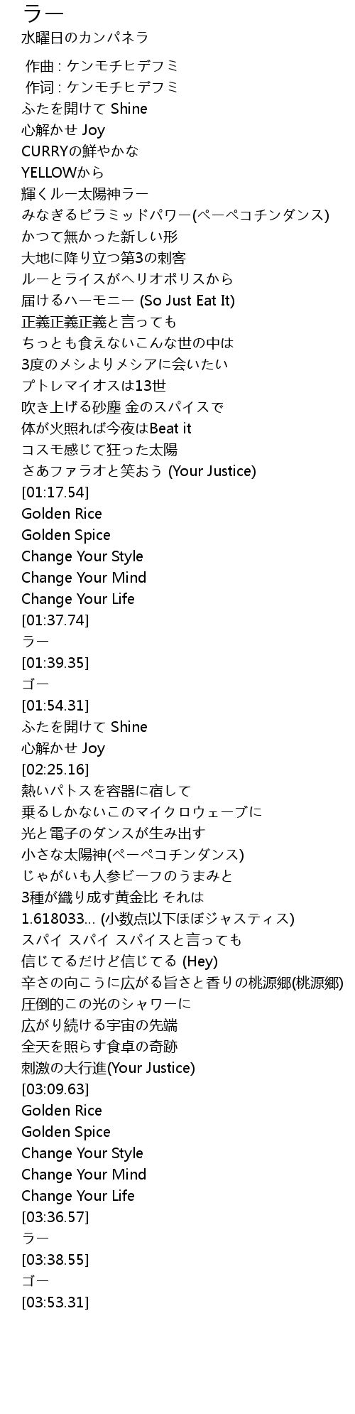 | [02:50.80] | 1.618033… (小数点以下ほぼジャスティス) |