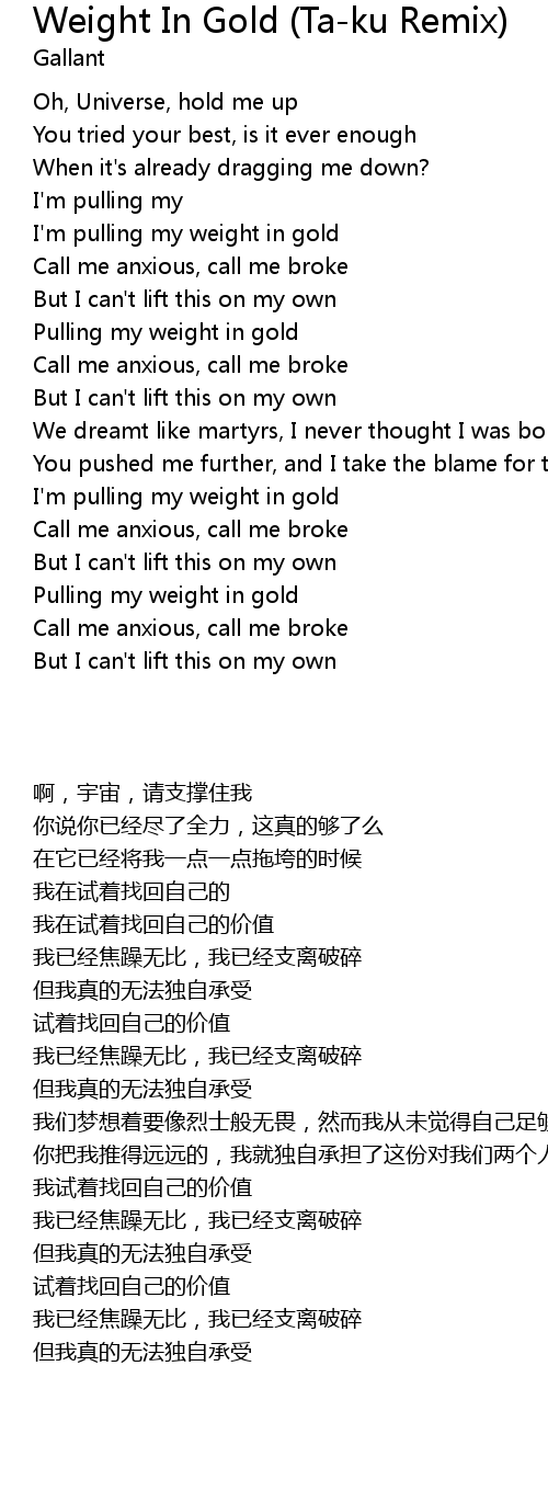 I'm pulling my weight in gold |