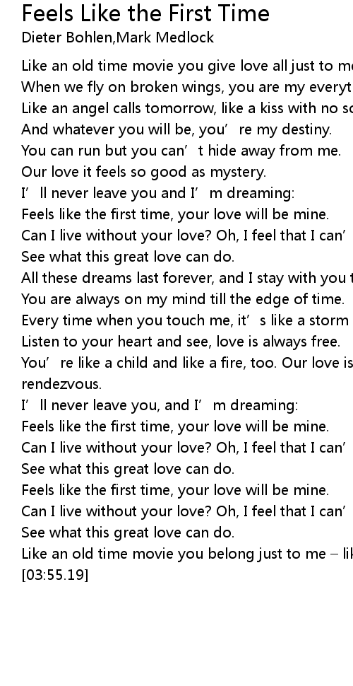 | [02:37.81] | Feels like the first time, your love will be mine. |