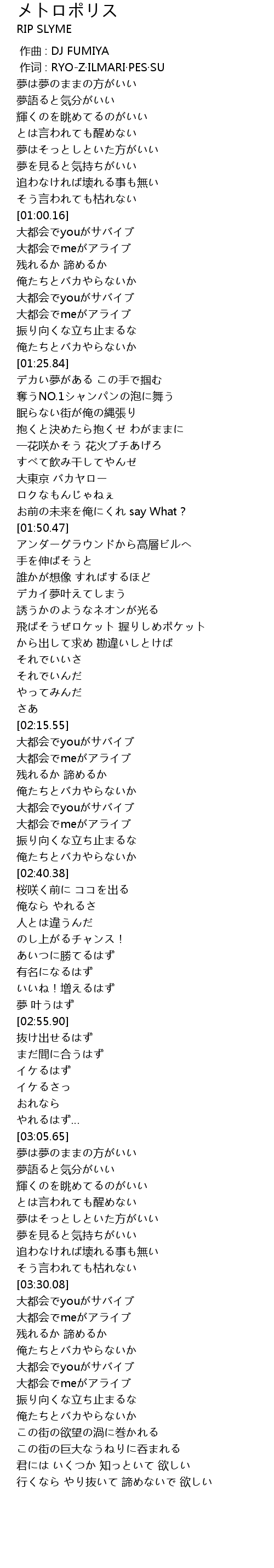 | [03:30.43] | 大都会でyouがサバイブ |
