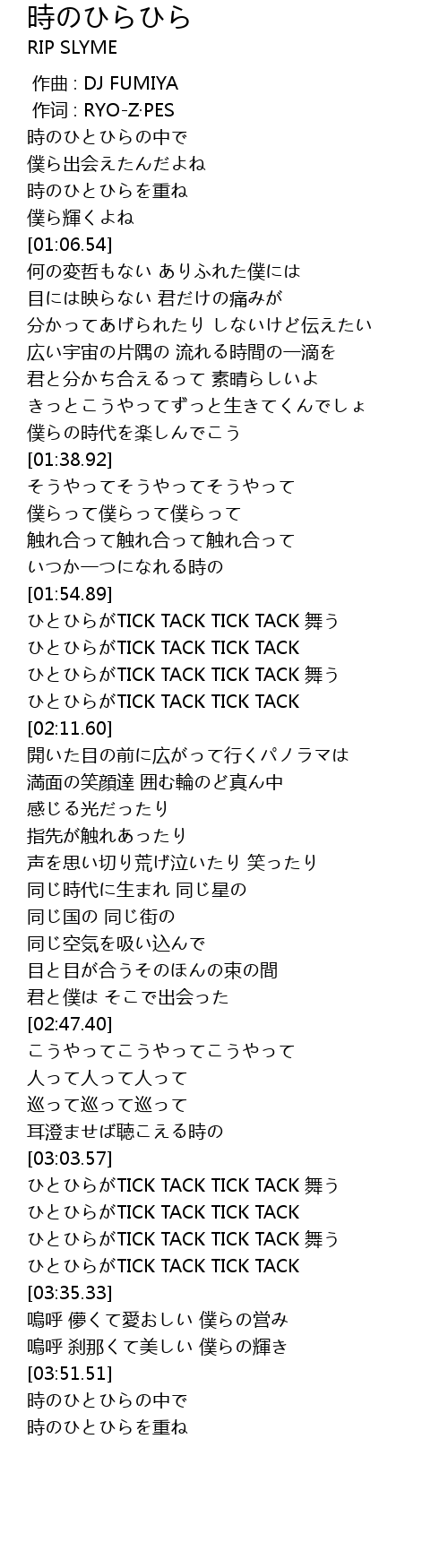 | [02:00.09] | ひとひらがTICK TACK TICK TACK |