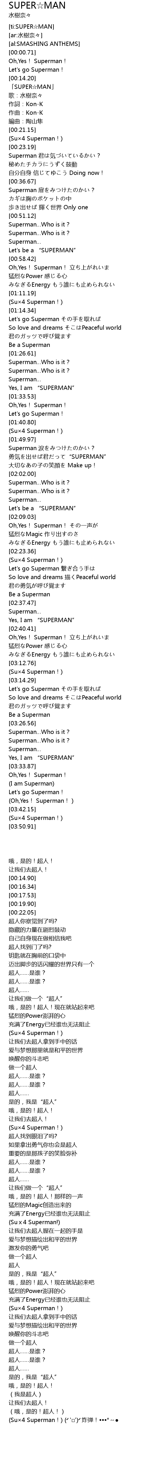 | [00:56.18] | Let's be a “SUPERMAN” |