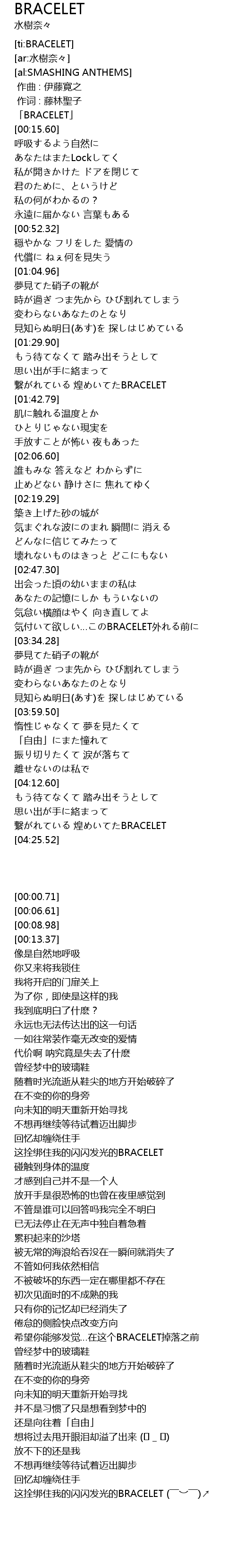 | [00:00.71] | 「BRACELET」 |