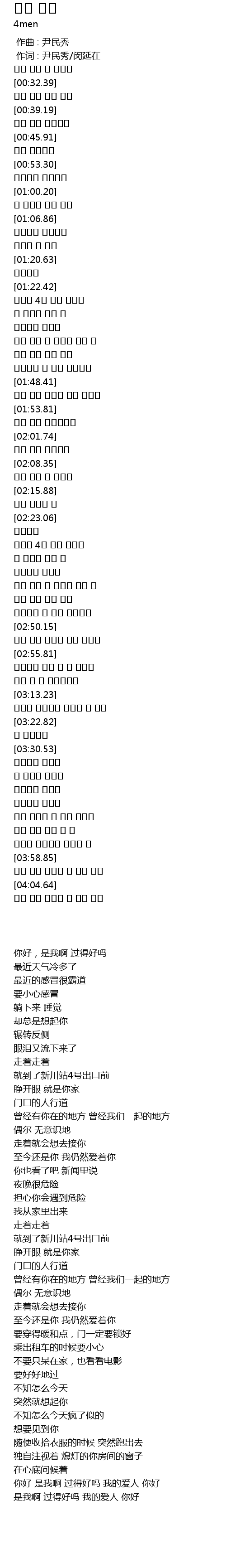 | [00:01.00] | 作词 : 尹民秀/闵延在 |
