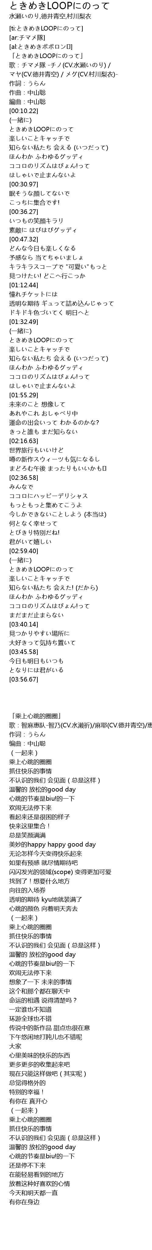 | [00:00.76] | 「ときめきLOOPにのって」 |