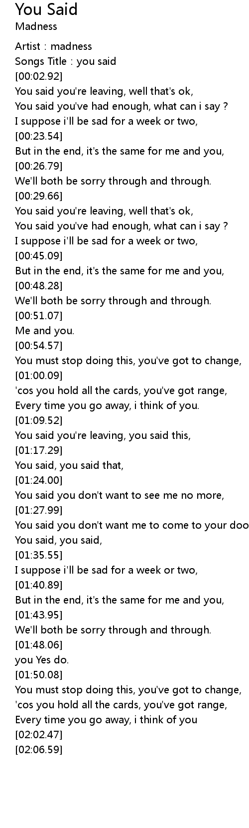 | [00:35.77] | You said you're leaving, well that's ok, |