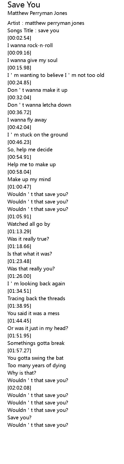 | [00:01.53] | Songs Title: save you |