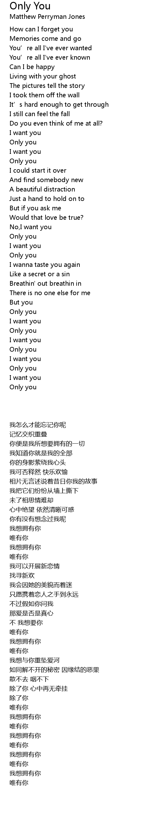 | Song | Only You |