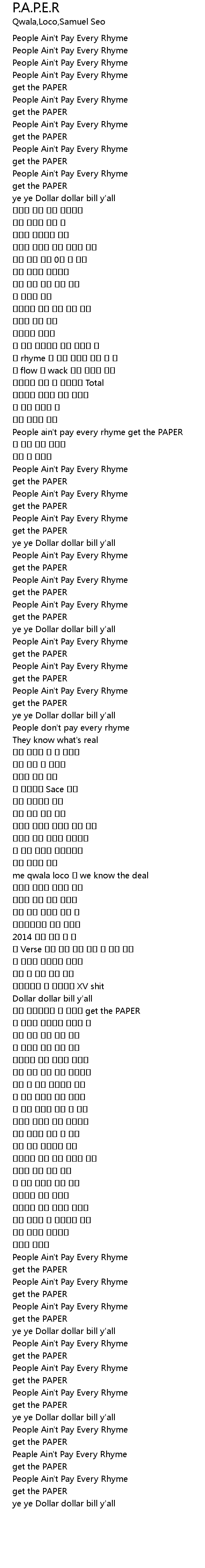 | People ain' t pay every rhyme get the PAPER | |