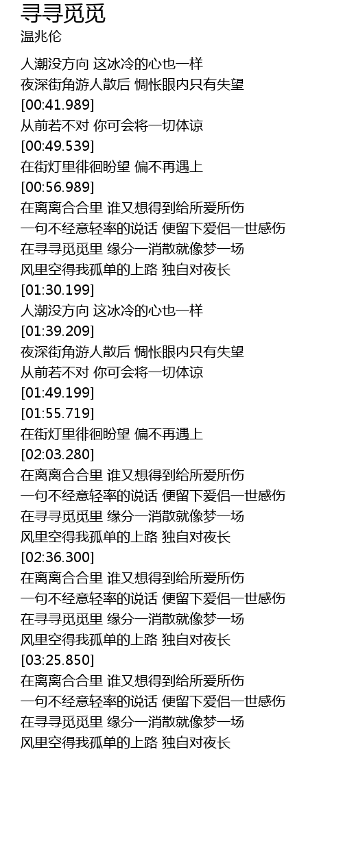 | [01:14.289] | 在寻寻觅觅里 缘分一消散就像梦一场 |