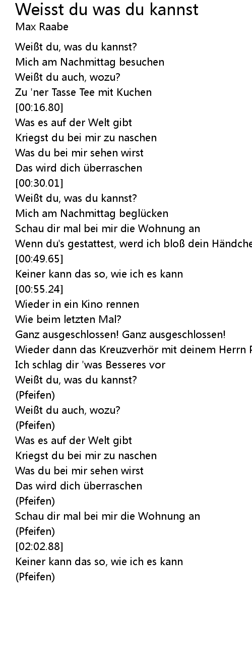 | [00:43.58] | Wenn du's gestattest, werd ich bloß dein Händchen drücken |
