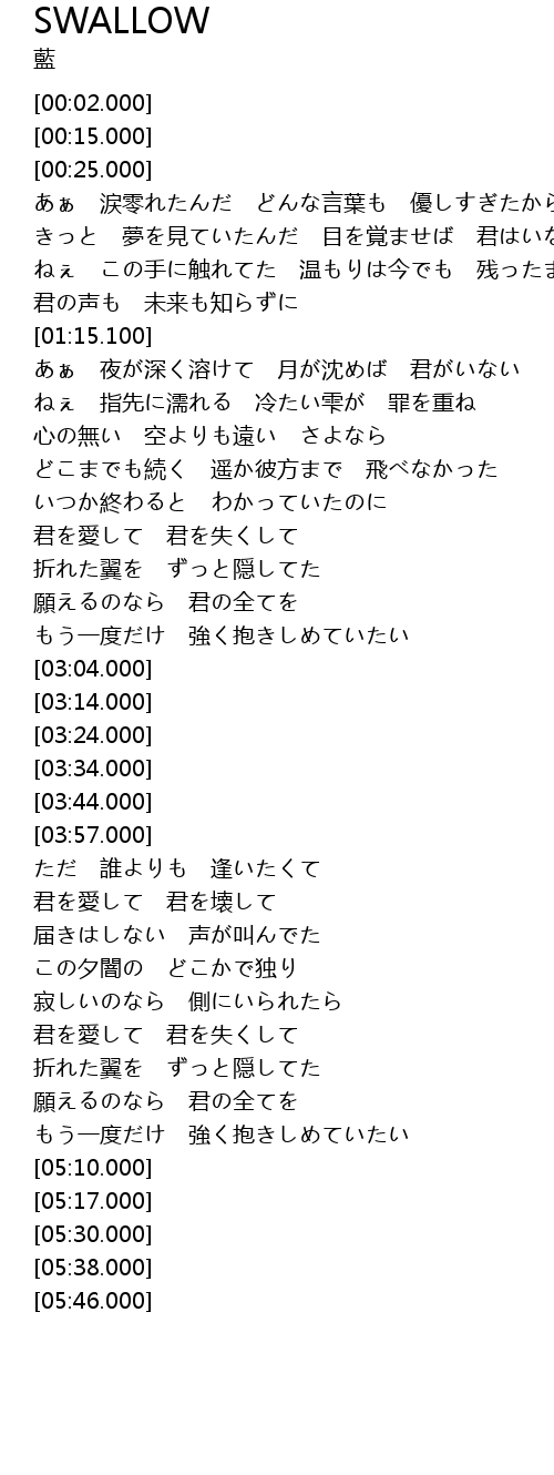 | [01:55.000] | 心の無い 空よりも遠い さよなら |