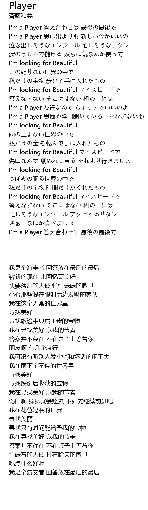 | [00:14.200] | I'm a Player 答え合わせは 最後の最後で |