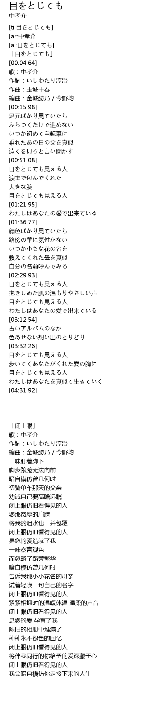 | [ti:目をとじても] | |