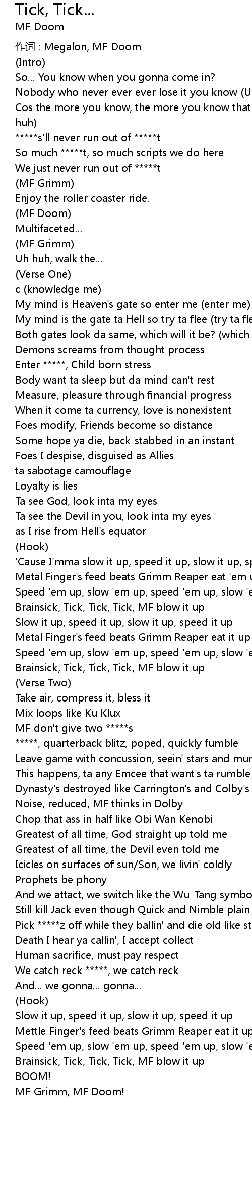 | Brainsick, Tick, Tick, Tick, MF blow it up | |