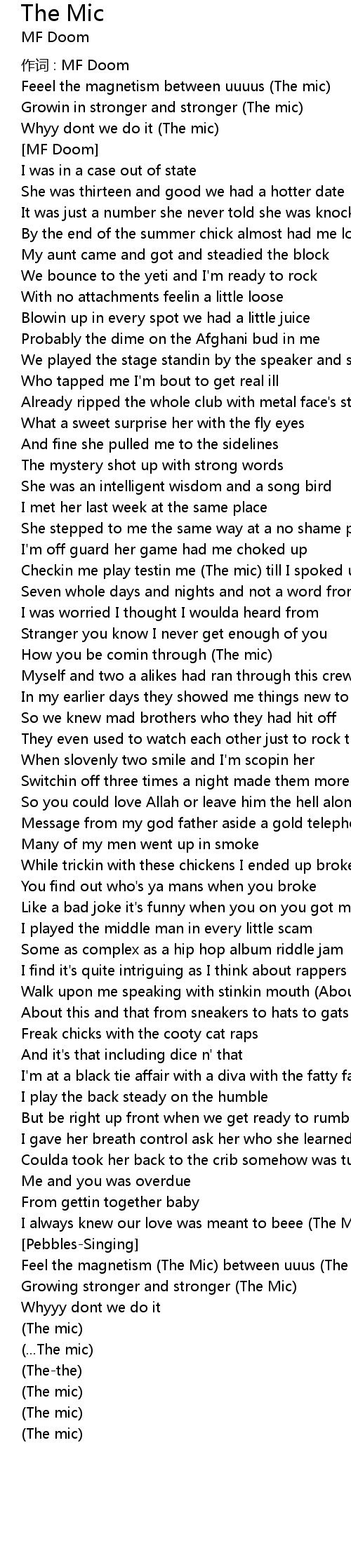 | Already ripped the whole club with metal face's steel wheel (The mic) | |