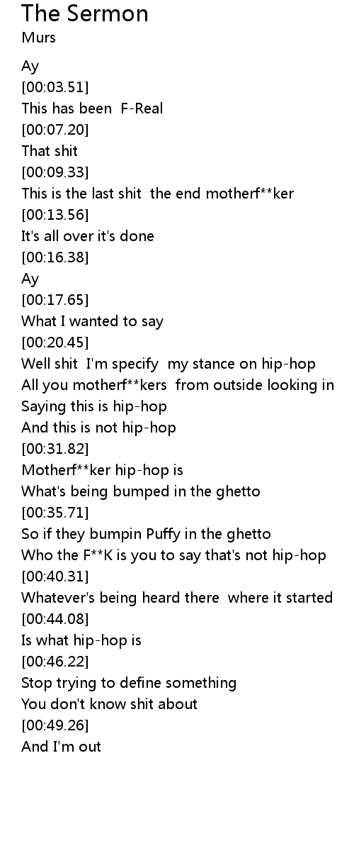 | [00:38.12] | Who the F**K is you to say that's not hip-hop |