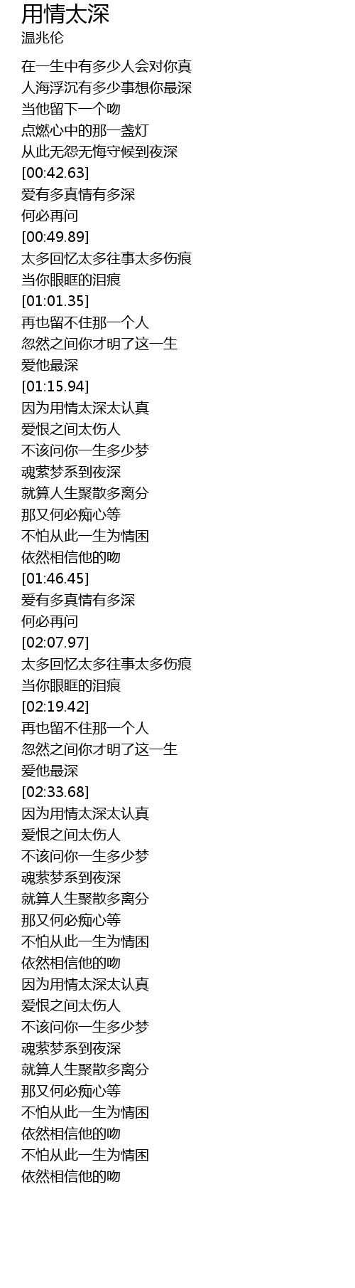 | [02:34.50] | yīn wèi yòng qíng tài shēn tài rèn zhēn |
