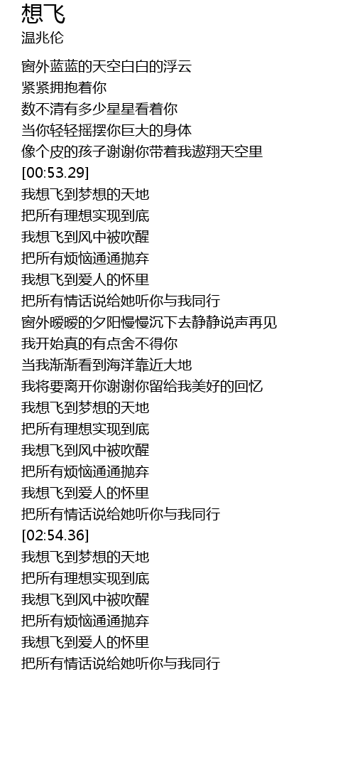 | [02:23.43] | 我想飞到梦想的天地 |