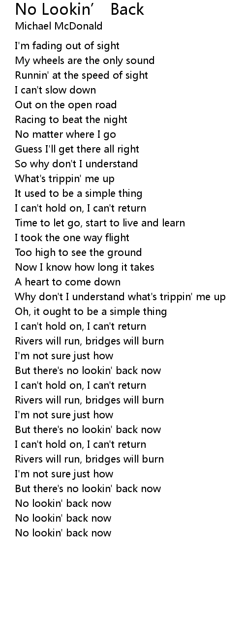 But there's no lookin' back now |