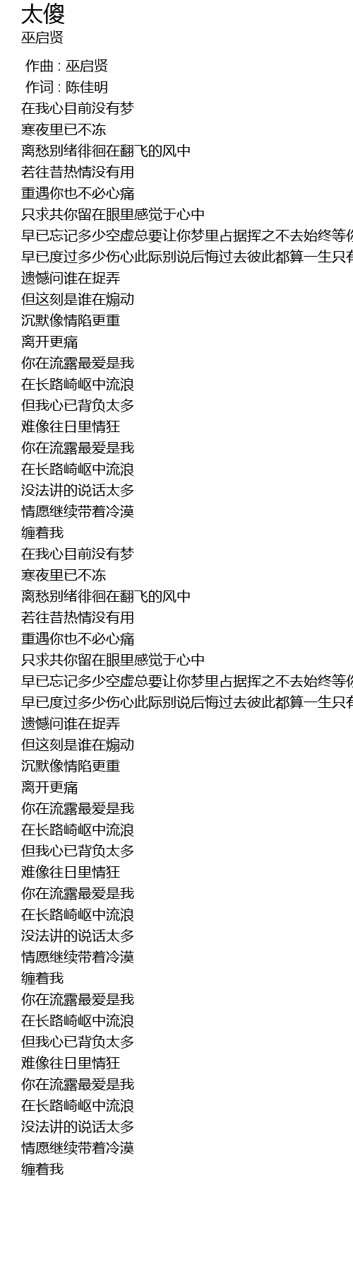 | [00:00.00] | 作曲 : 巫启贤 |