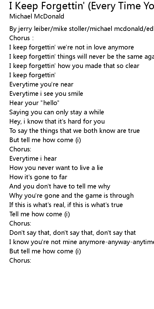 | I keep forgettin' we' re not in love anymore | |