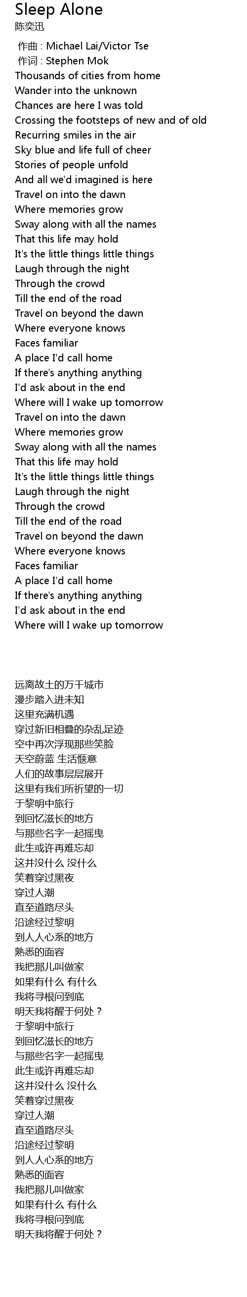| [00:01.00] | 作词 : Stephen Mok |