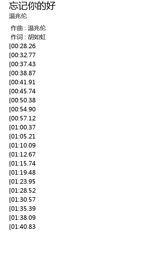 | [03:25.08][01:23.95] | 忘记你的好 |