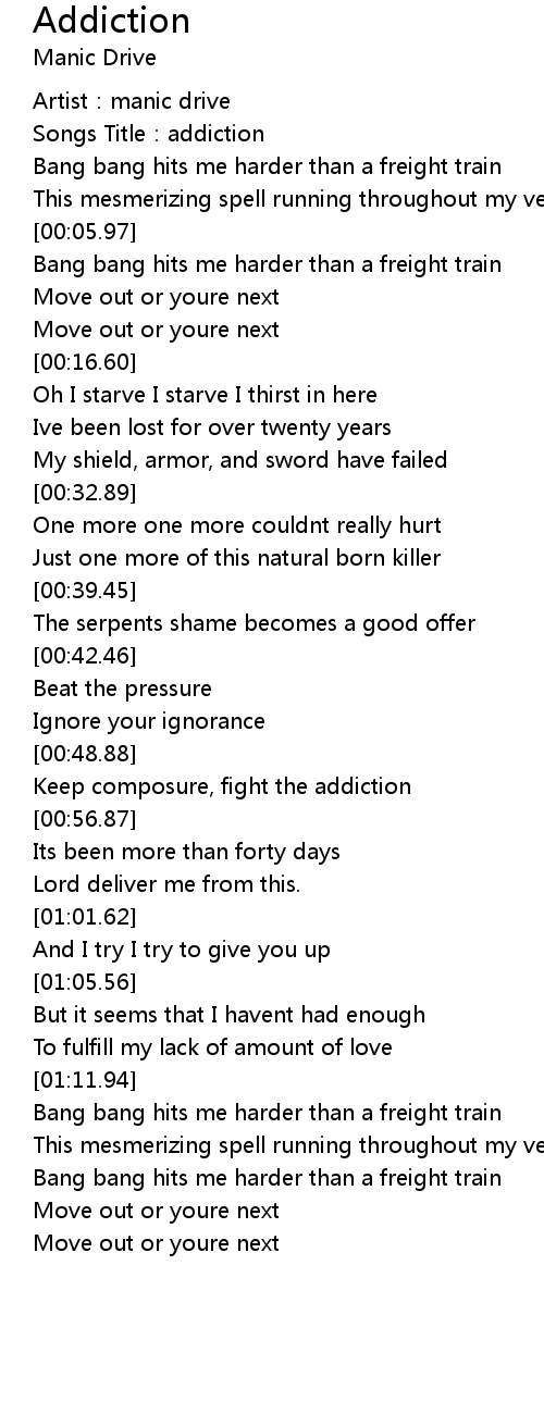 | [01:19.82] | Bang bang hits me harder than a freight train |
