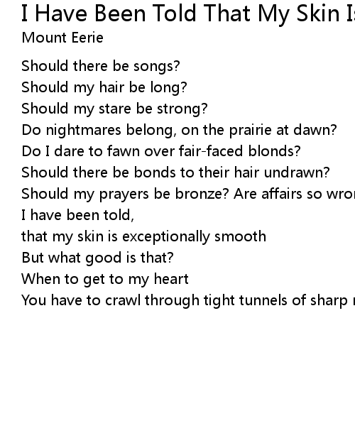 | Song | I Have Been Told That My Skin Is Exceptionally Smooth |