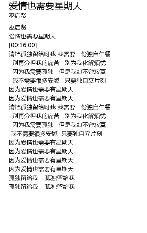 | [02:18.51] | 因为爱情也需要有星期天 |
