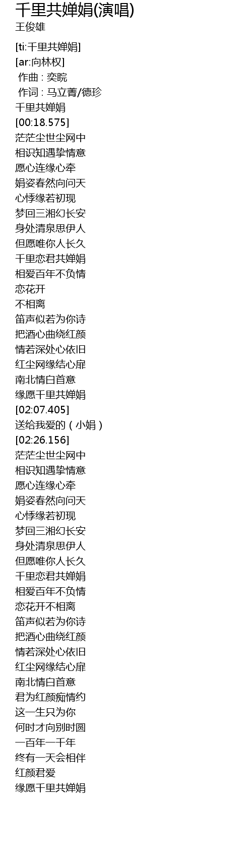 | [02:00.05] | yuán yuàn qiān lǐ gòng chán juān |