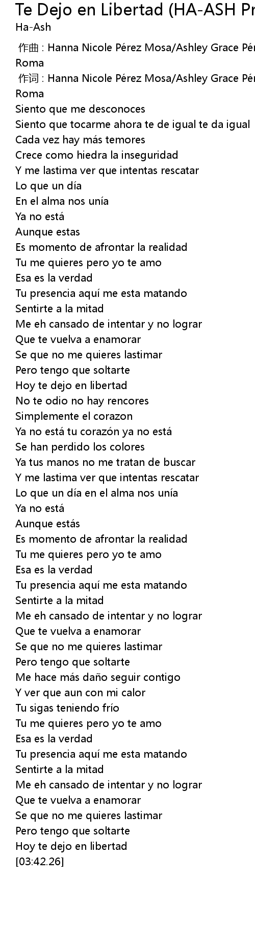 | [00:01.00] | zuò cí : Hanna Nicole Pé rez Mosa Ashley Grace Pé rez Mosa José Luis Roma |