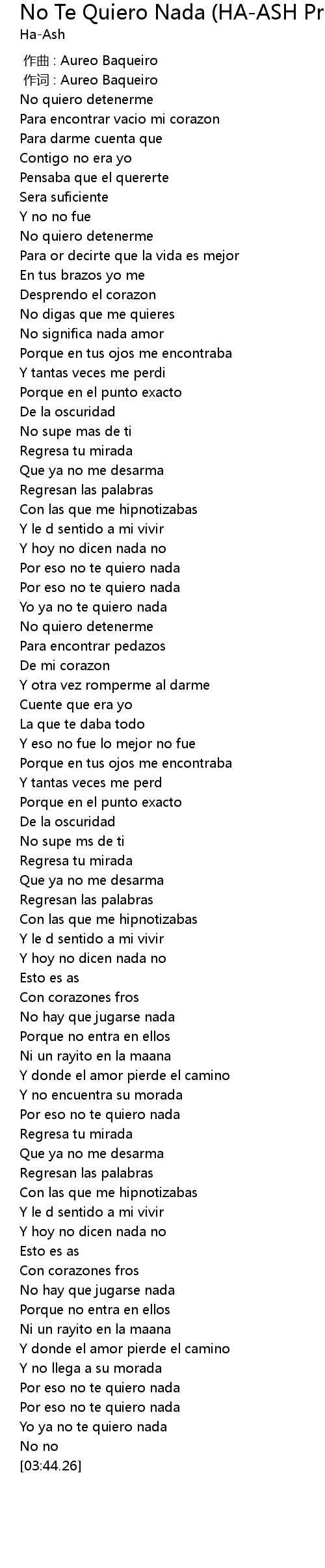 | Song | No Te Quiero Nada (HA-ASH Primera Fila - Hecho Realidad [Acústico en Vivo]) |