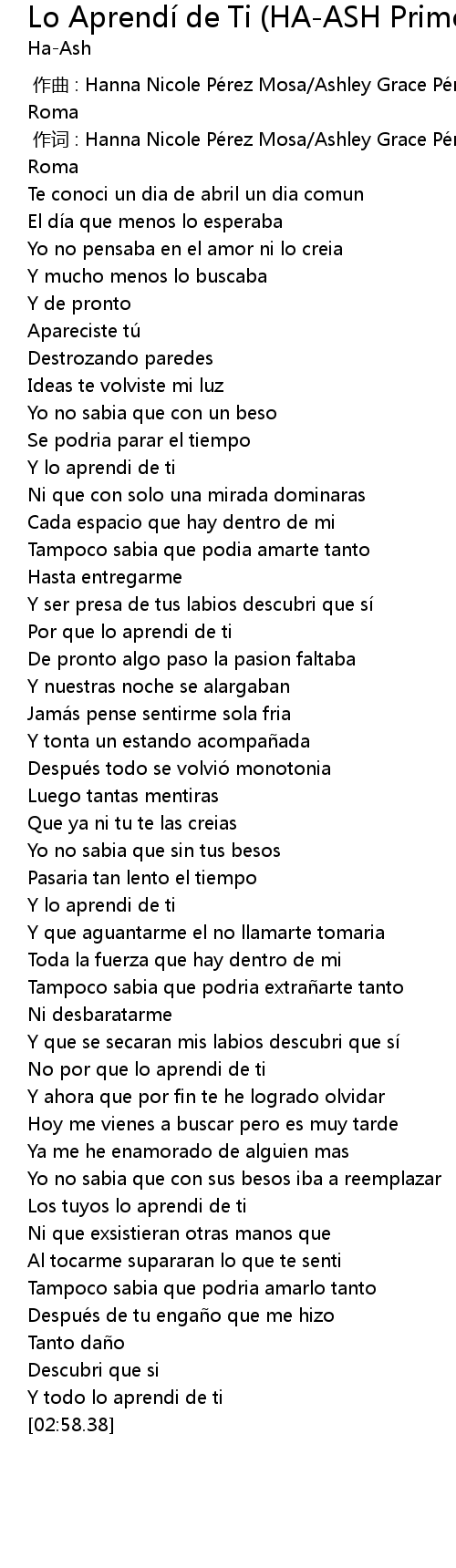 | [00:01.00] | zuò cí : Hanna Nicole Pé rez Mosa Ashley Grace Pé rez Mosa José Luis Roma |